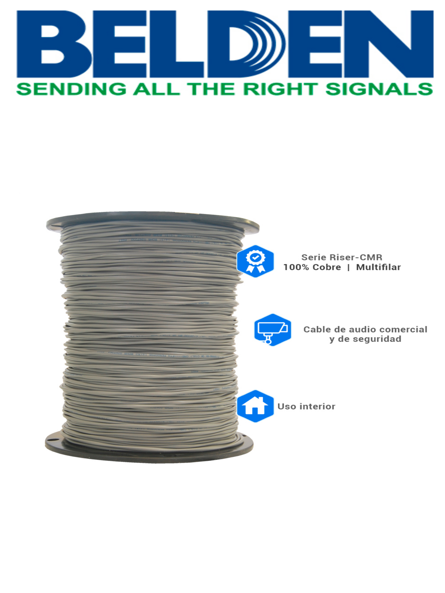 BELDEN 5300UE0081000 - Cable de alarma/ 2 Conductores / Calibre 18 AWG/ 305 Metros / Recomendable para control de acceso / Videoportero / Audio/ COLOR GRIS